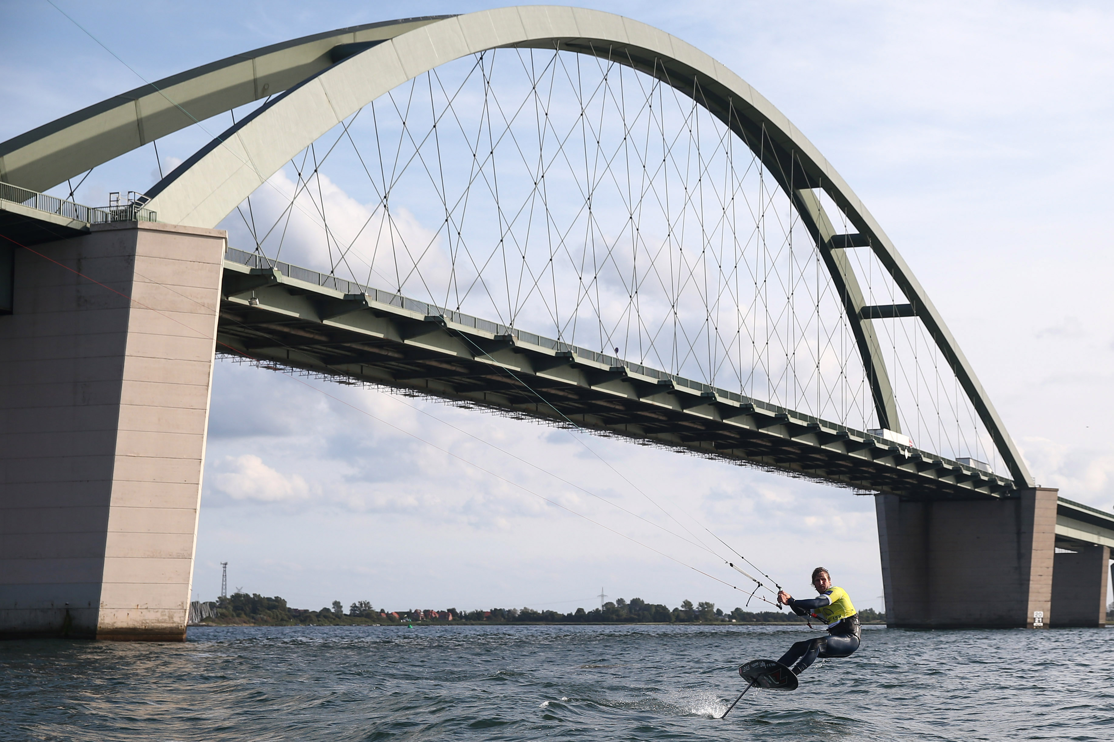 „Es war unglaublich anstrengend, vor allem der zweite Teil der Umrundung, bei dem ich viel gegen den Wind kreuzen musste. Hier und am Anfang des Rennens hatte ich auch mit dem Seegras zu kämpfen, das mich ein wenig ausgebremst hat. Aber es hat alles fantastisch geklappt, ich hätte nicht gedacht, unter zwei Stunden zu bleiben. Allein unter der Fehmarnsundbrücke durch zu fahren, war ein Erlebnis, das man nicht alle Tage hat“, so der 23-Jährige, der bei seinem Husarenritt 85 Kilometer mit einer Durchschnittsgeschwindigkeit von 49 km/h zurücklegte.